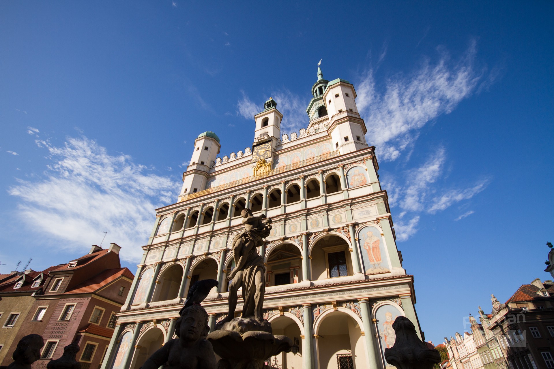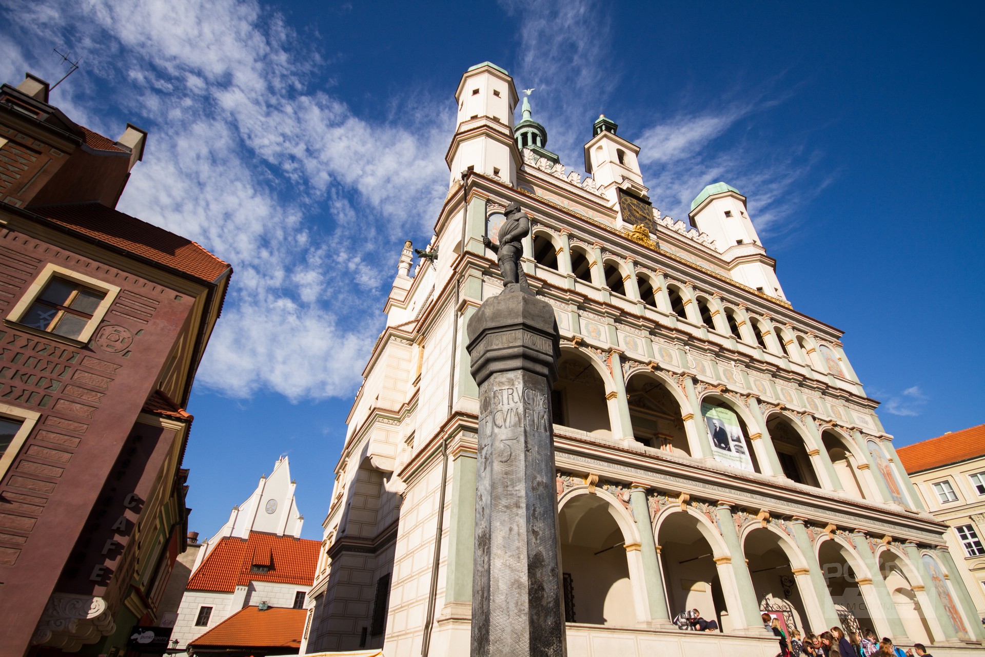 Perła architektury renesansowej, wybudowana w latach 50. XVI w. Na elewacji zewnętrznej znajdują się m.in. portrety królów Polski i książąt wielkopolskich. Wokół ratusza, na elewacjach, są inskrypcje łacińskie oraz fragmenty konstytucji Miasta Poznania. Wieża zwieńczona jest orłem. Wnętrza po wielu przebudowach i remontach z zachowaną architekturą renesansową. Najbardziej reprezentacyjną salę stanowi wielka sień z bogatą symboliką odrodzenia na sklepieniu. Z tej epoki pochodzi także sklepienie lustrzane usytuowane w Sali Sądowej, mieszczącej się na tej samej kondygnacji, co sień. Klatki schodowe są szerokie, przestronne.