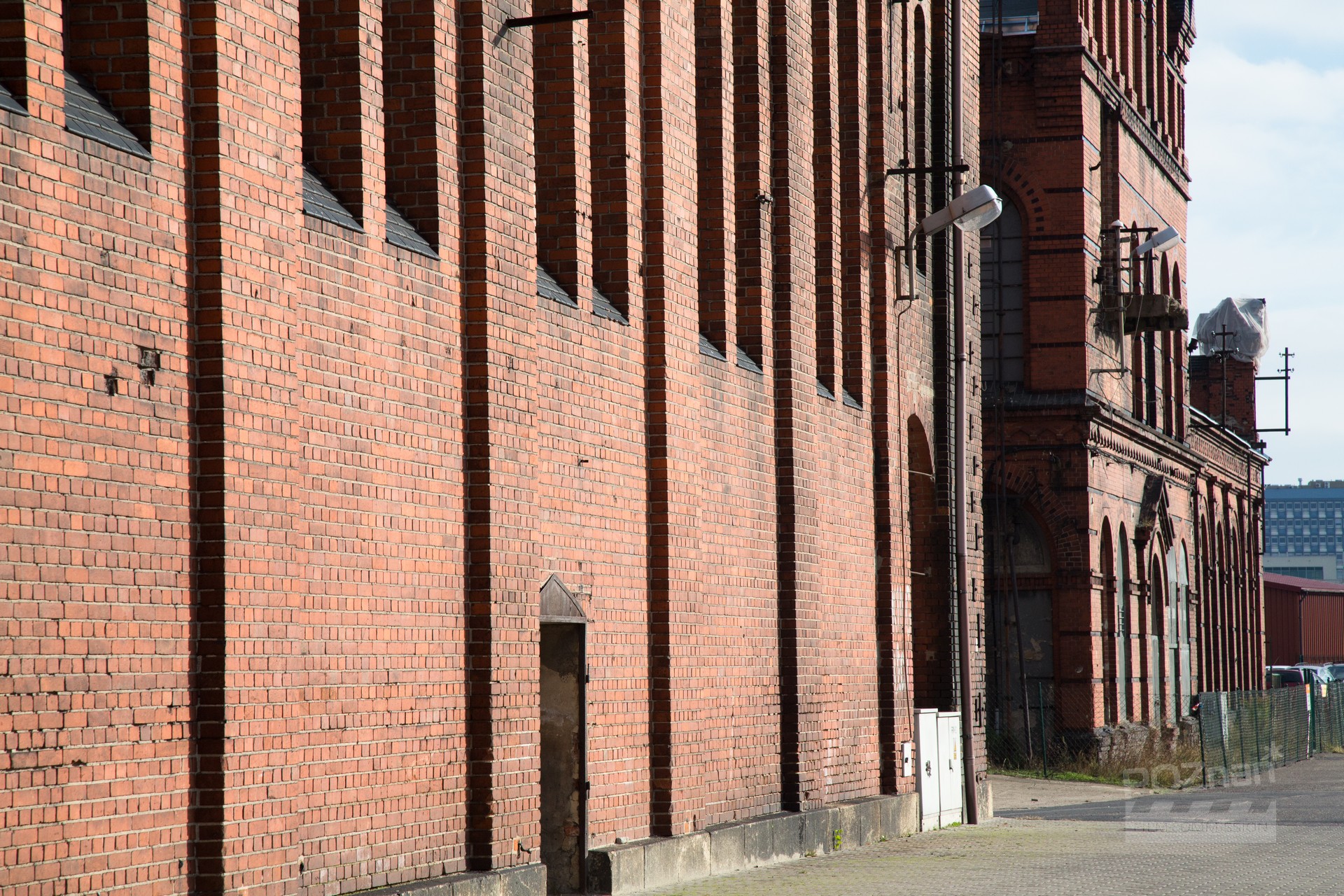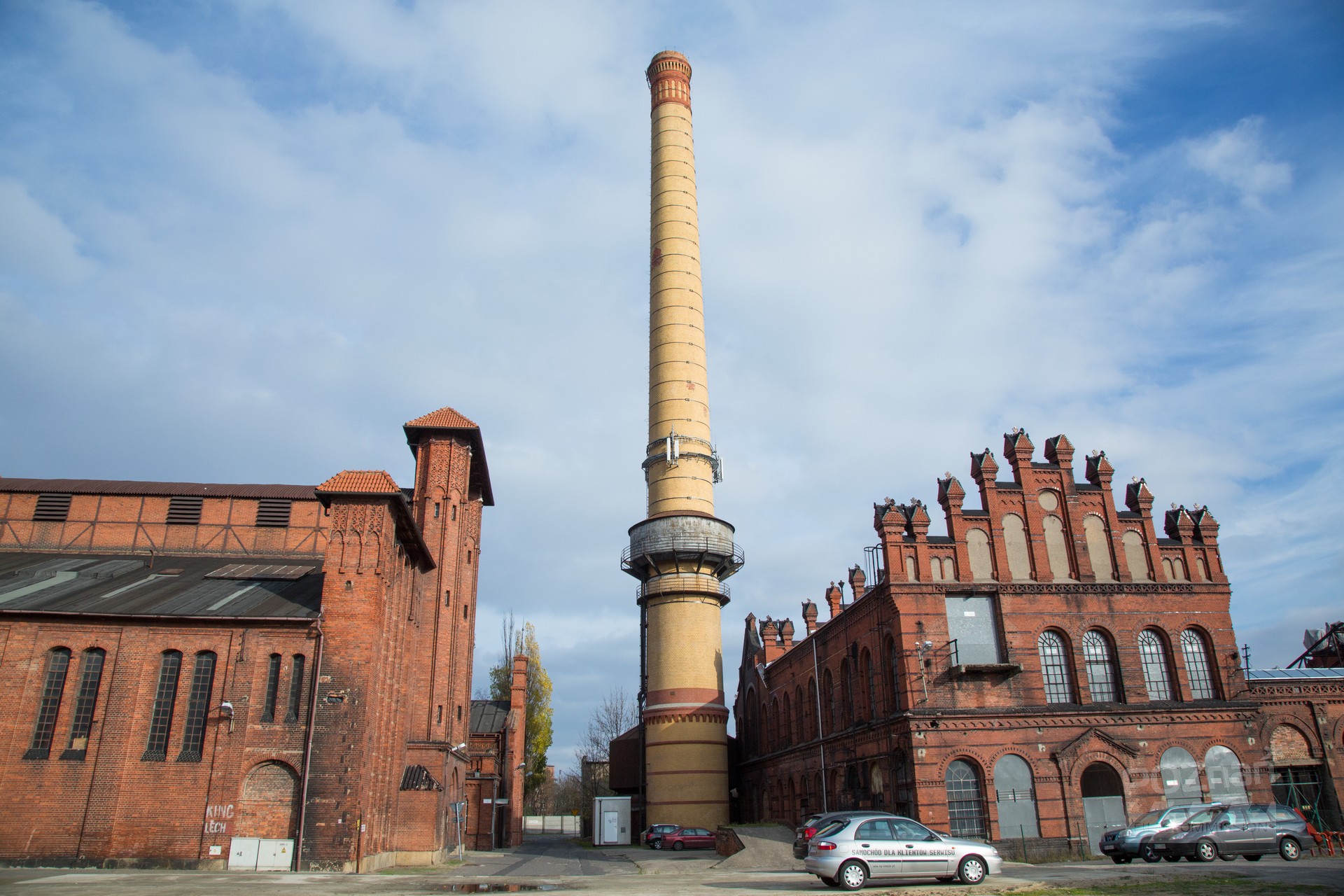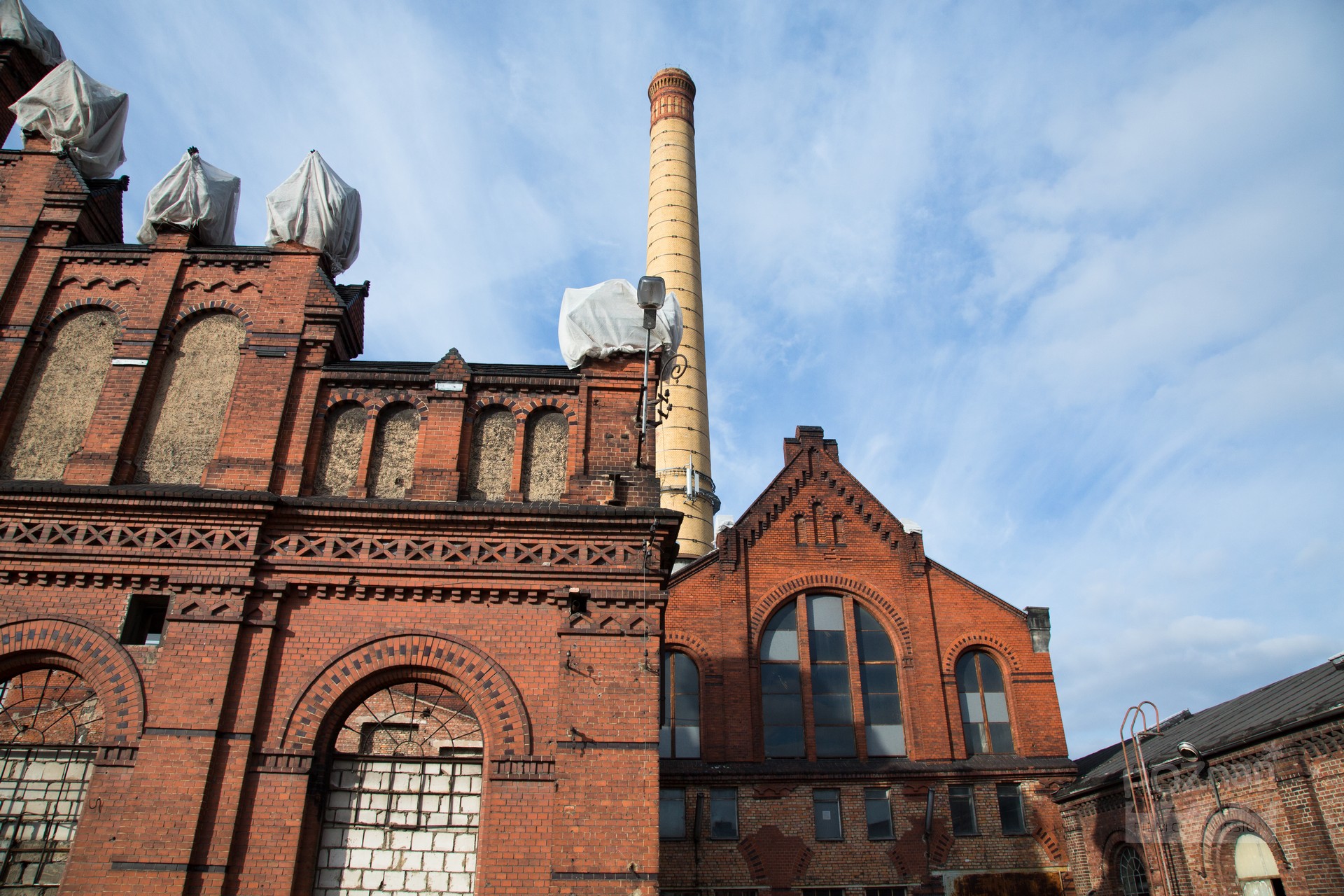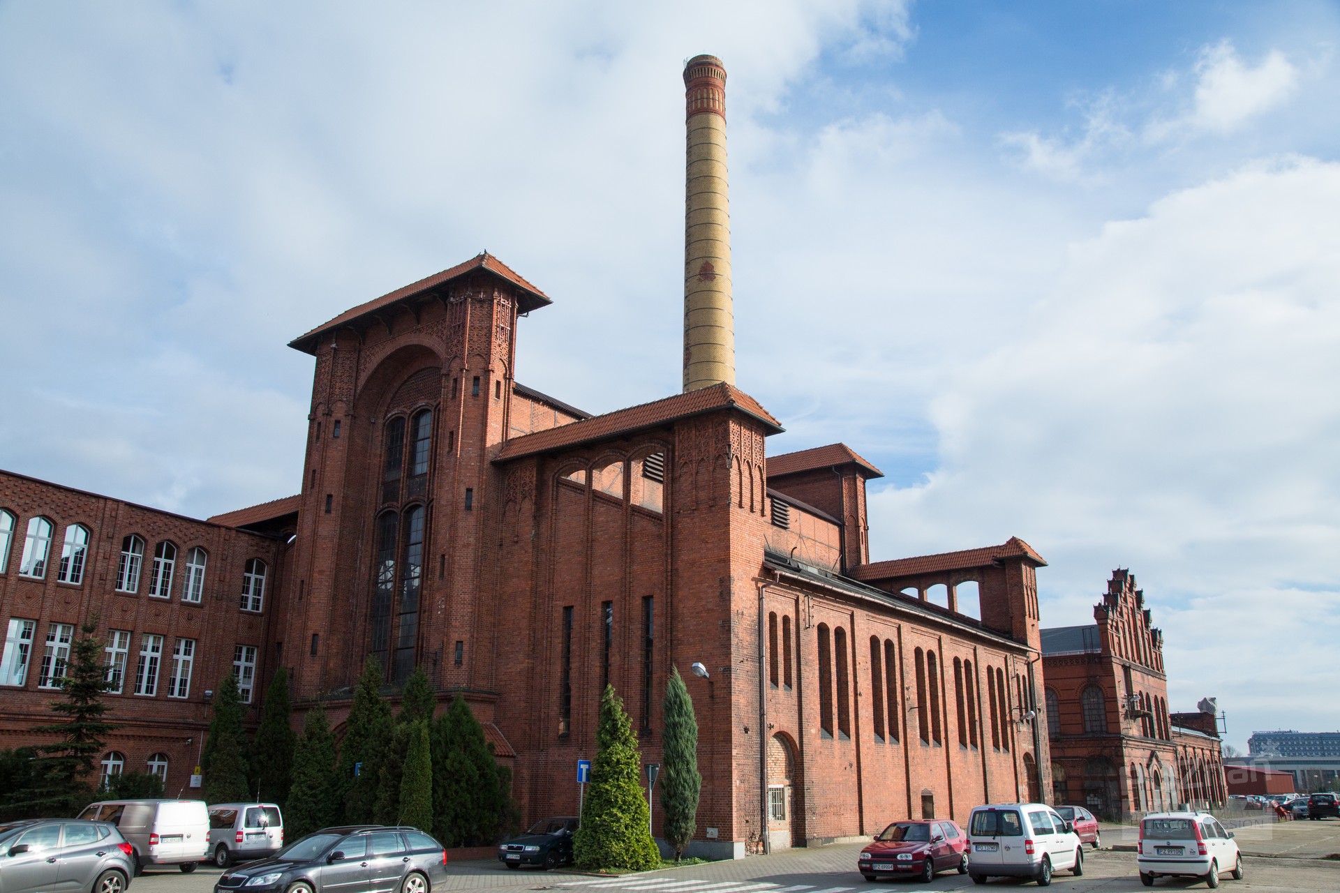 Zespół budynków postindustrialnych z połowy XIX w. Część odrestaurowano i wykorzystywano jako pomieszczenia biurowe do czasów współczesnych, inne uległy zniszczeniu. Na terenie tym wielokrotnie odbywały się wydarzenia kulturalne – koncerty, festiwale (w tym filmowy „Transatlantyk”) i wiele innych. Elewacje budynków wykonano z cegły czerwonej i klinkierowej. Perspektywy otwarte, czyste architektonicznie. Główny budynek przy ul. Grobla został odrestaurowany z zachowaną klatką schodową z początku XX w. W pobliżu znajduje się nabrzeże rzeki.